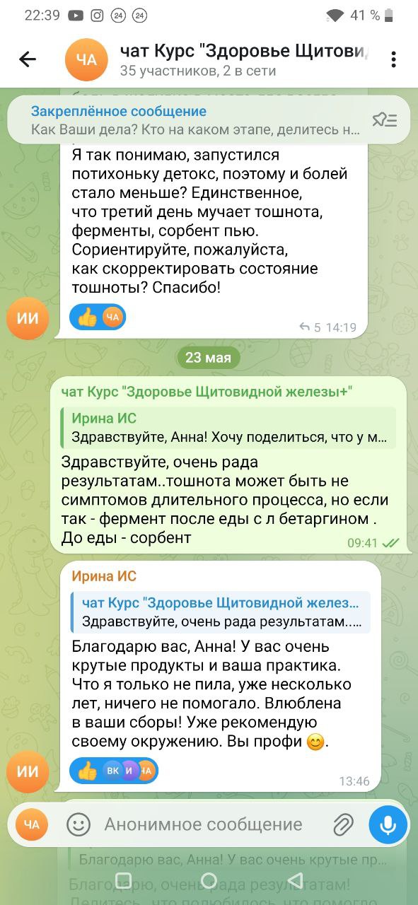 Telegram канал и чат курса, с онлайн поддержкой автора